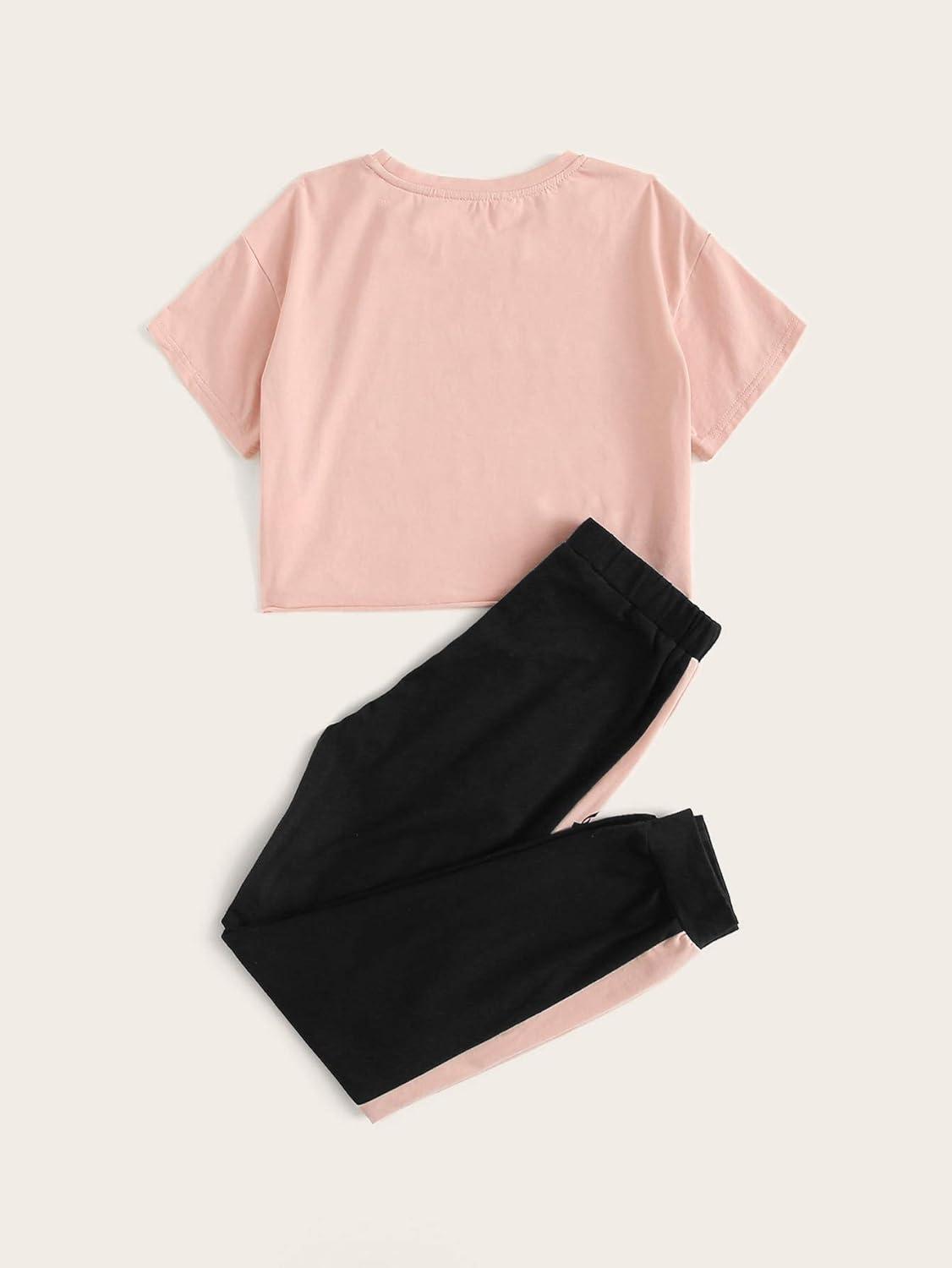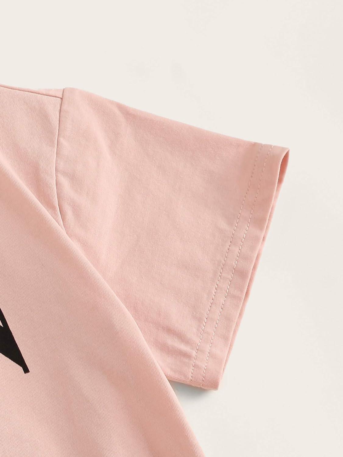Floerns Girls 2 Piece Letter Graphic Short Sleeve Crop Top and Legging Set(Dusty Pink)