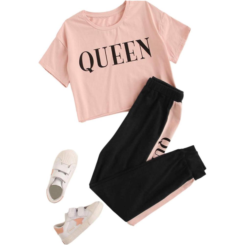 Get up to 60% off on Floerns Girls 2 Piece Letter Graphic Short Sleeve Crop Top and Legging Set(Dusty Pink) styles during our winter sale event.