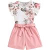 imageFloerns Girls 2 Piece Outfit Ruffle Trim Tee Top with Paperbag Waist Shorts SetPink Multi