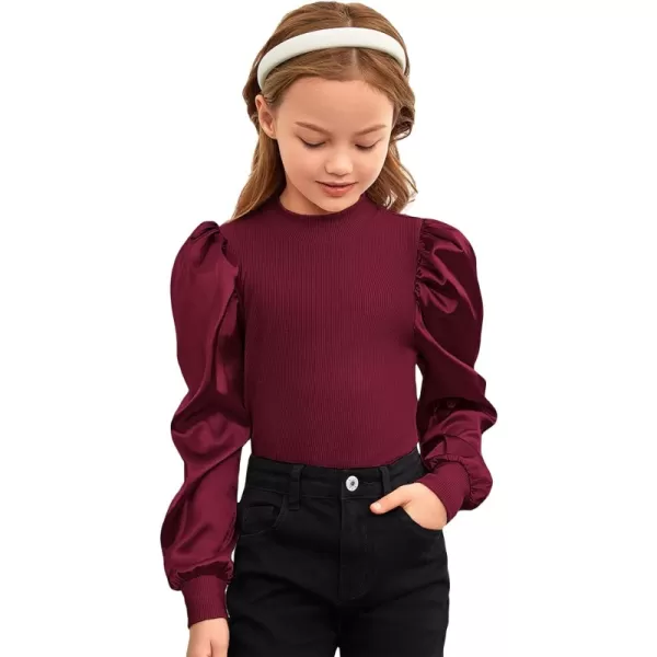Floerns Girls Casual Puff Long Sleeve Round Neck Rib Knit Blouse Tee Tops(Hot Pink)
