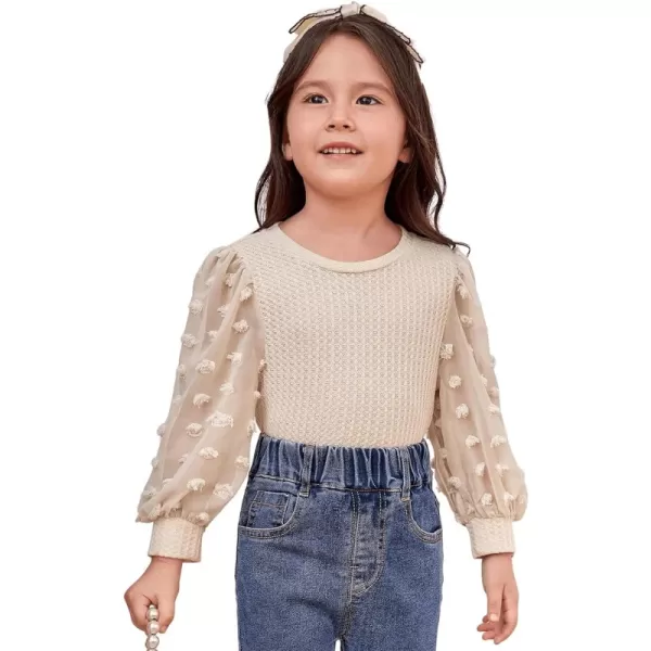 Floerns Girl’s Contrast Mesh Swiss Dots Tee Shirts Lantern Sleeve Round Neck Tee Tops(Apricot)