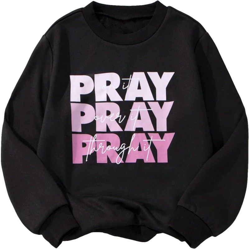 Floerns Girls Letter Print Long Sleeve Drop Shoulder Sweatshirt Pullover Top(Black)