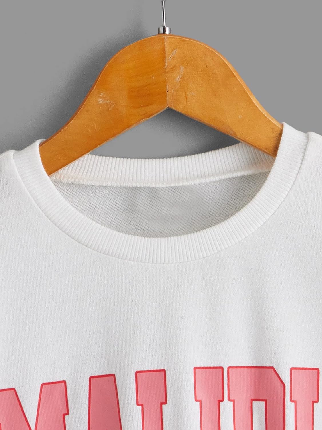 Floerns Girls Letter Print Long Sleeve Drop Shoulder Sweatshirt Pullover Top(White)