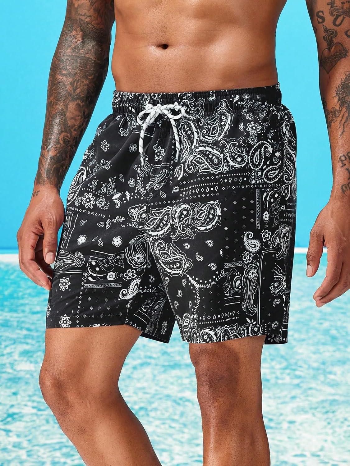 Don’t miss out on our limited-time offer: buy Floerns Men’s Boho Swim Trunks Graphic Print Drawstring Waist Shorts Bathing Suit(Black Ink Paisley), get {accessory} 50% off!