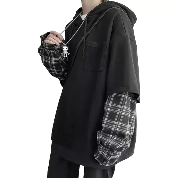 Floerns Men’s Graphic Print Long Sleeve Drawstring Hoodie Pullover Sweatshirt(Black Ink Plaid)