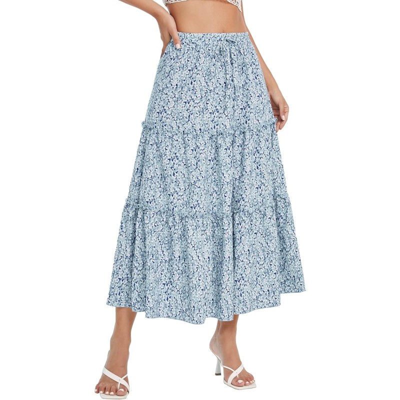 Floerns Women’s A Line Ruffle Layered Flowy Beach Casual Long Maxi Skirt(Blue Multi)