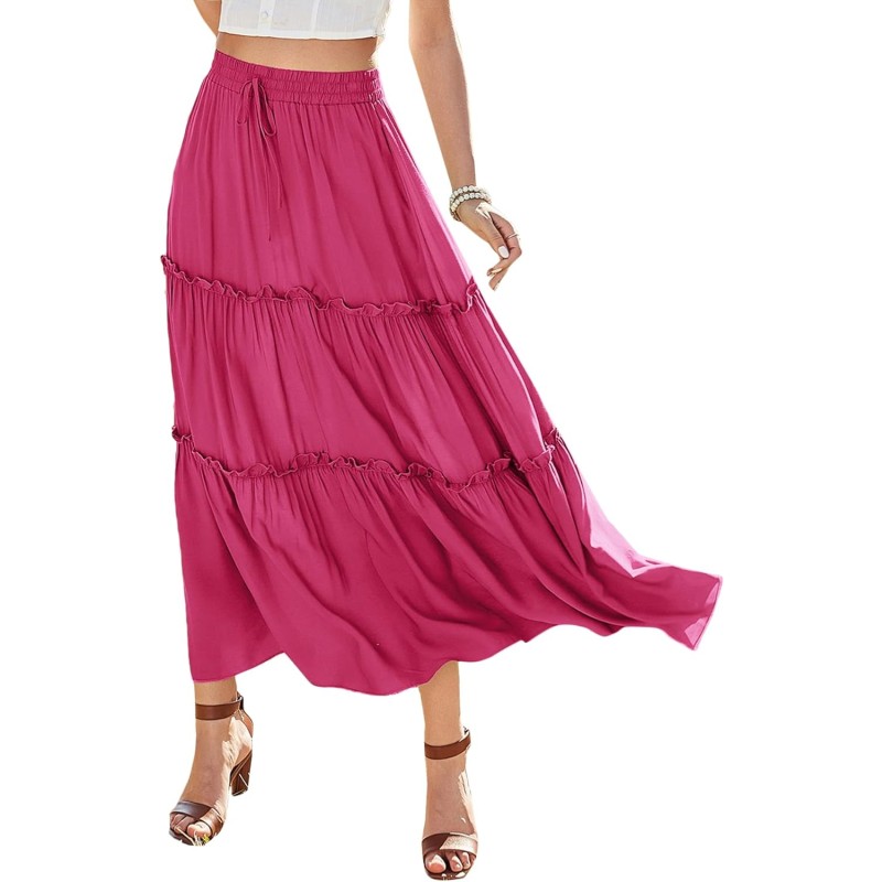 Floerns Women’s A Line Ruffle Layered Flowy Beach Casual Long Maxi Skirt(Hot Pink)