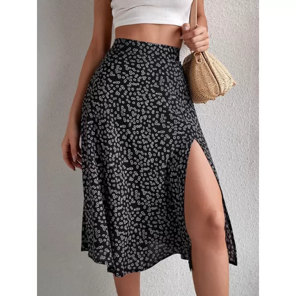Floerns Women’s Boho Floral High Waist Split A Line Midi Skirt(Dark Black Floral)