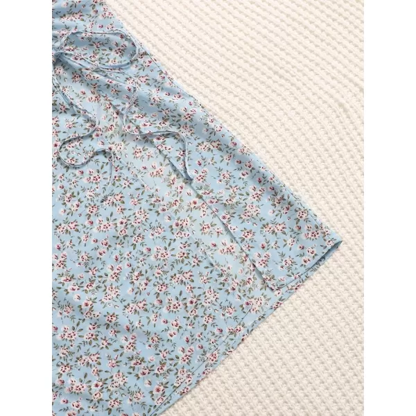 Floerns Women’s Boho Floral High Waist Split A Line Midi Skirt(Pastel Blue)