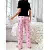 Floerns Women’s Cartoon Print Short Sleeve Top with Long Pants Two Piece Pajama Sets(Pink Multi)