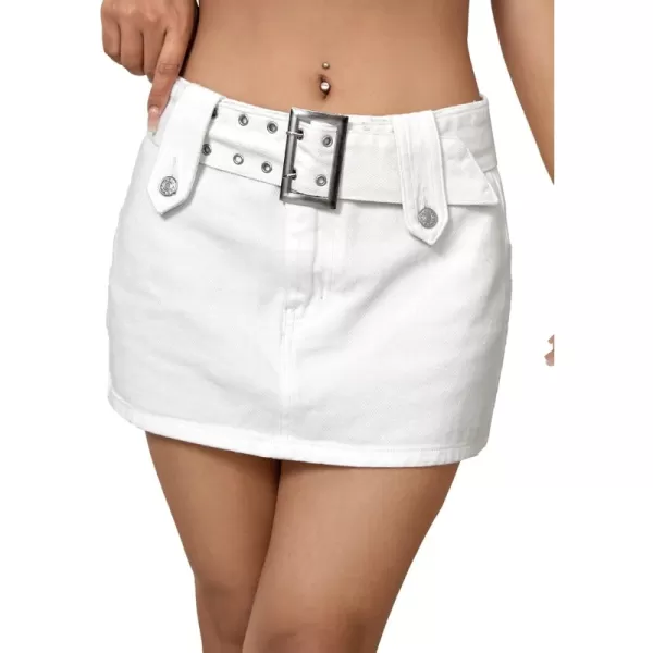 Floerns Women’s Casual Buckled Belt Drop Waist Straight Denim Mini Skirt(Sky Blue)
