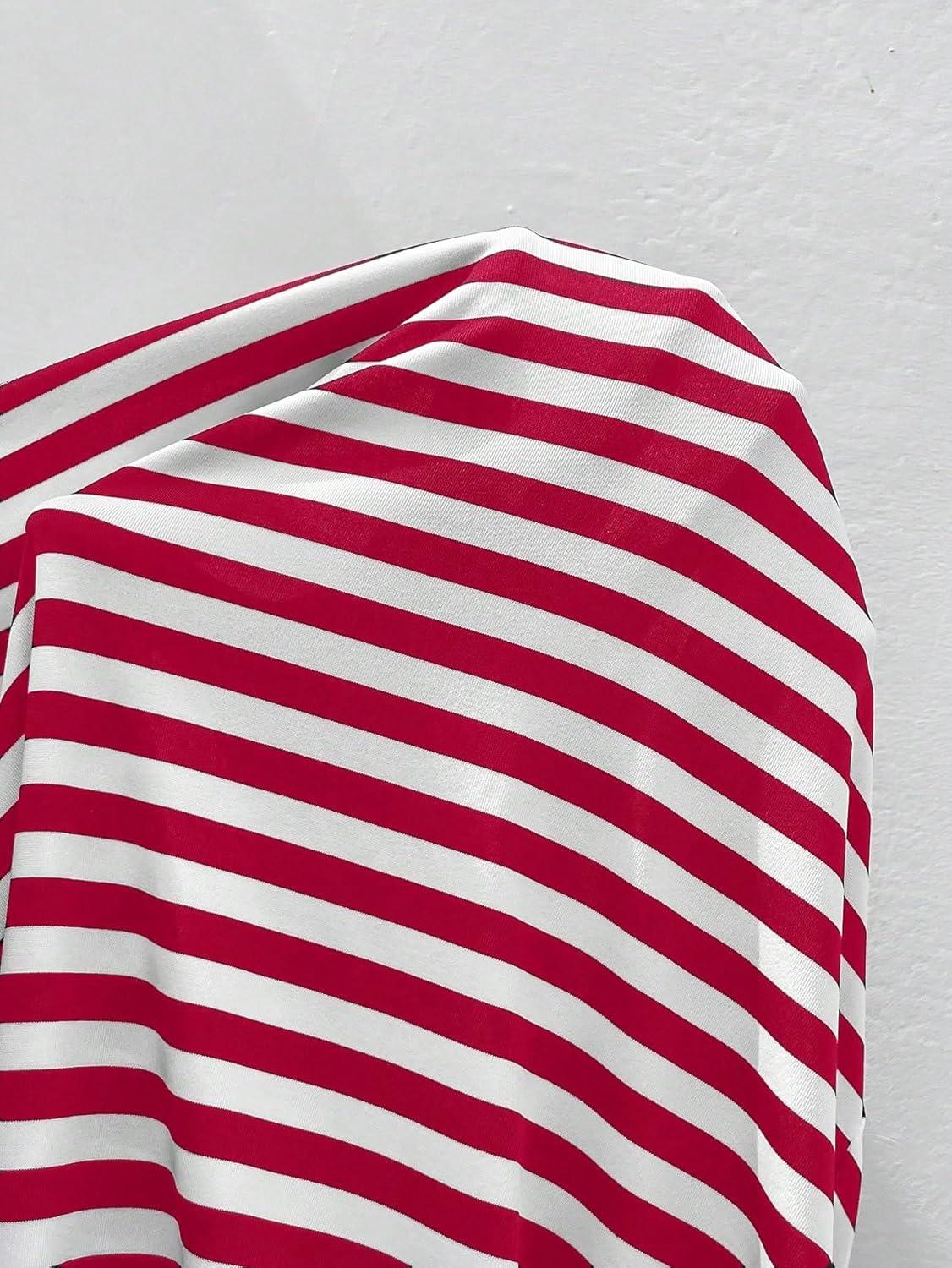 Floerns Women’s Casual Cap Sleeve Boat Neck Striped Print Slim Fit Tee Shirt(Red)