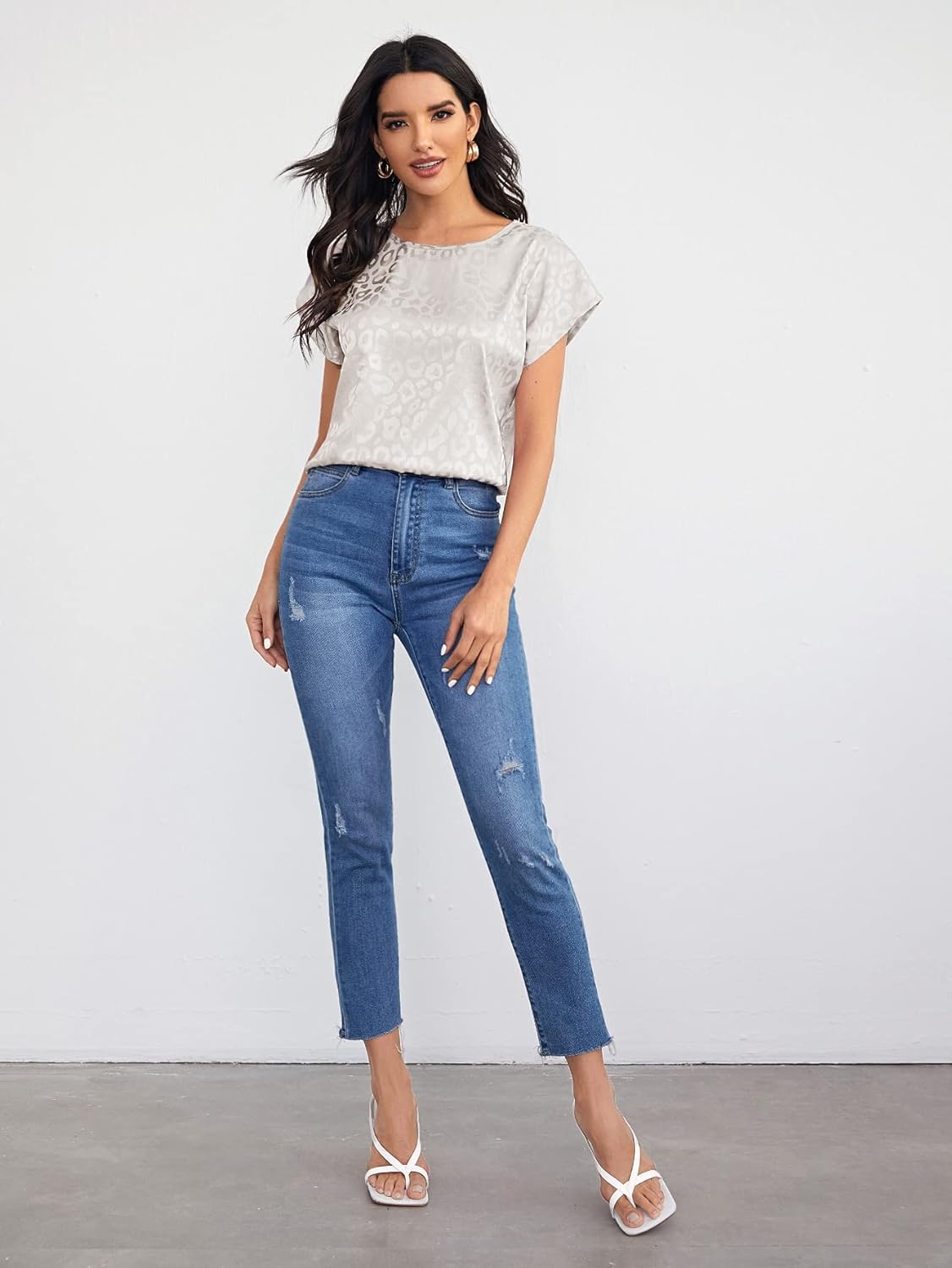 Don’t miss out on our limited-time offer: buy Floerns Women’s Casual Cap Sleeve Leopard Print Satin Silk Blouse Tops(White), get {accessory} 50% off!