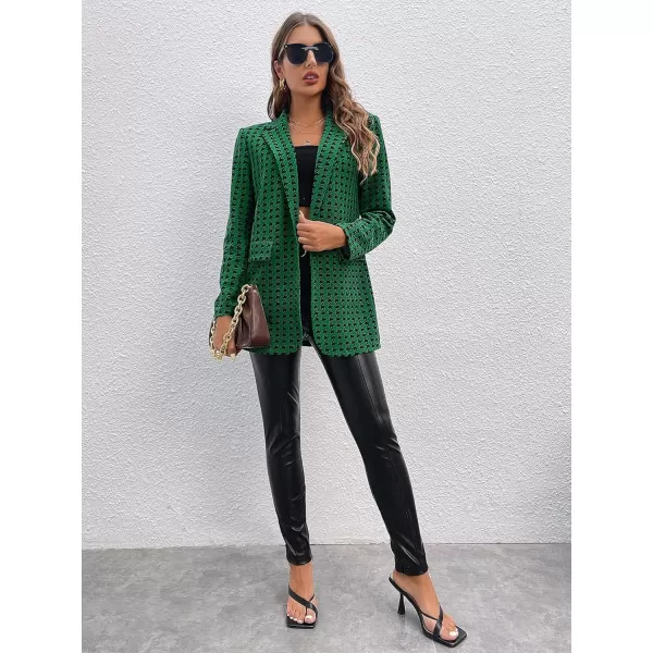 Floerns Women’s Casual Long Sleeve Pop Art Colorful Blazer Graphic Work Suit Jacket(Green Houndstooth)