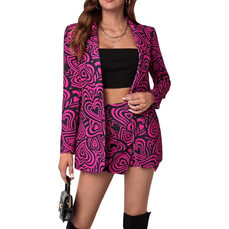 Floerns Women’s Casual Long Sleeve Pop Art Colorful Blazer Graphic Work Suit Jacket(Purple Multi)