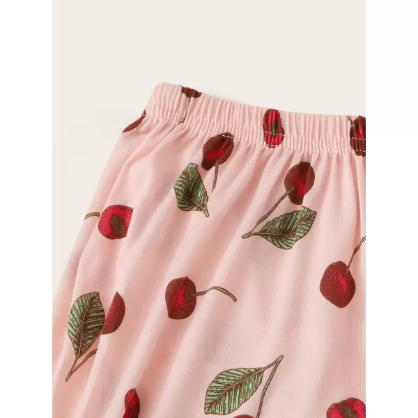 Floerns Women’s Cute Sleepwear Long Sleeve Top and Pants Two Piece Pajama Sets(Pink Cherry)