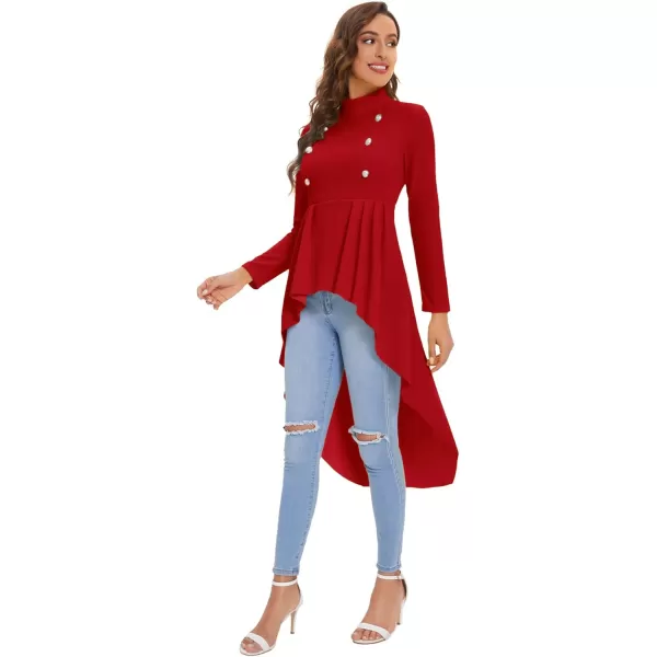 Floerns Women’s Double Button Long Sleeve Round Neck Asymmetrical Blouse Tops(Red)