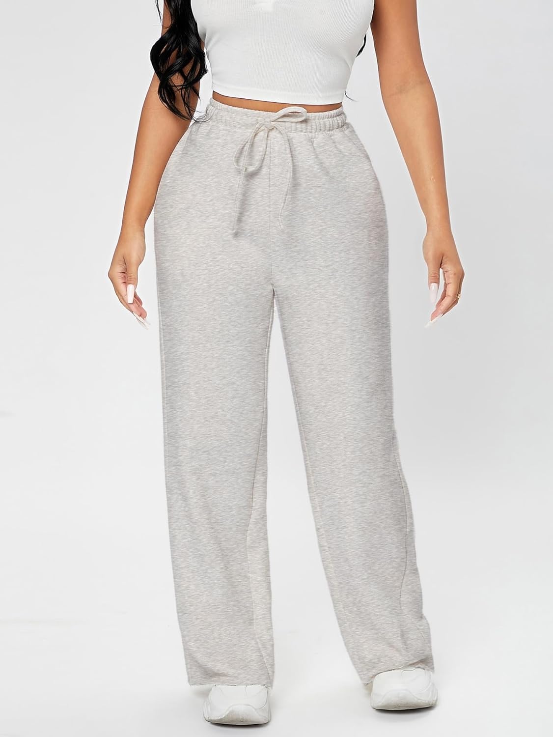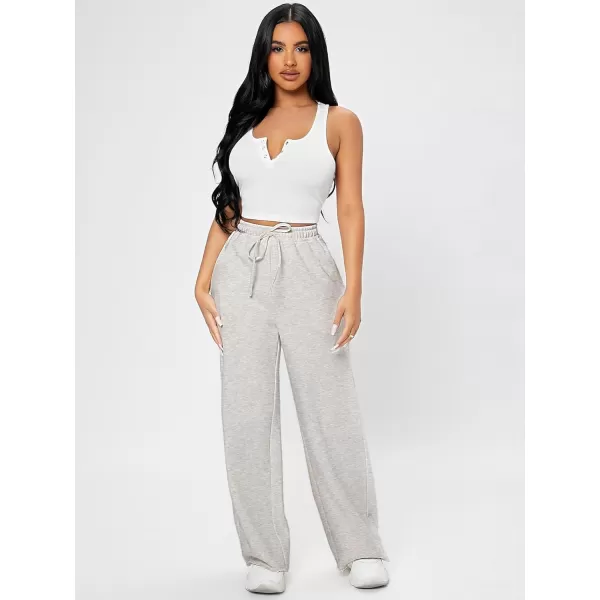 Floerns Women’s Drawstring Waist Solid Slant Pocket High Waist Wide Leg Sweatpants(Light Grey)