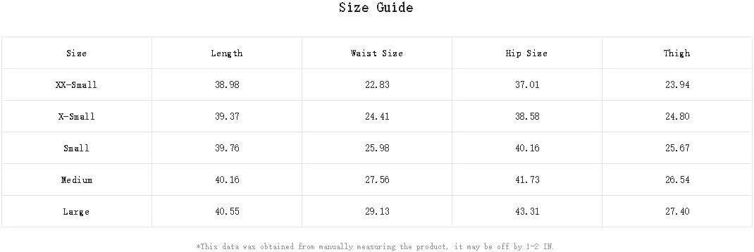 X-Small:Hip Size:38.6IN,Length:39.4IN,Thigh:24.8IN,Waist Size:24.4IN