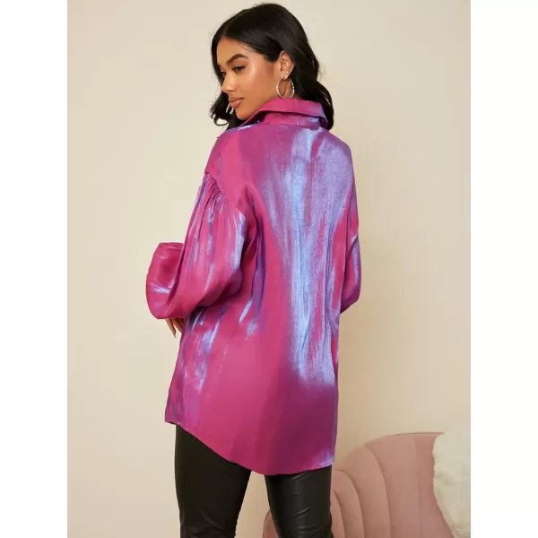 Floerns Women’s Drop Shoulder Oversize Long Sleeve Silk Button Down Shirt Blouse Top(Red Violet)