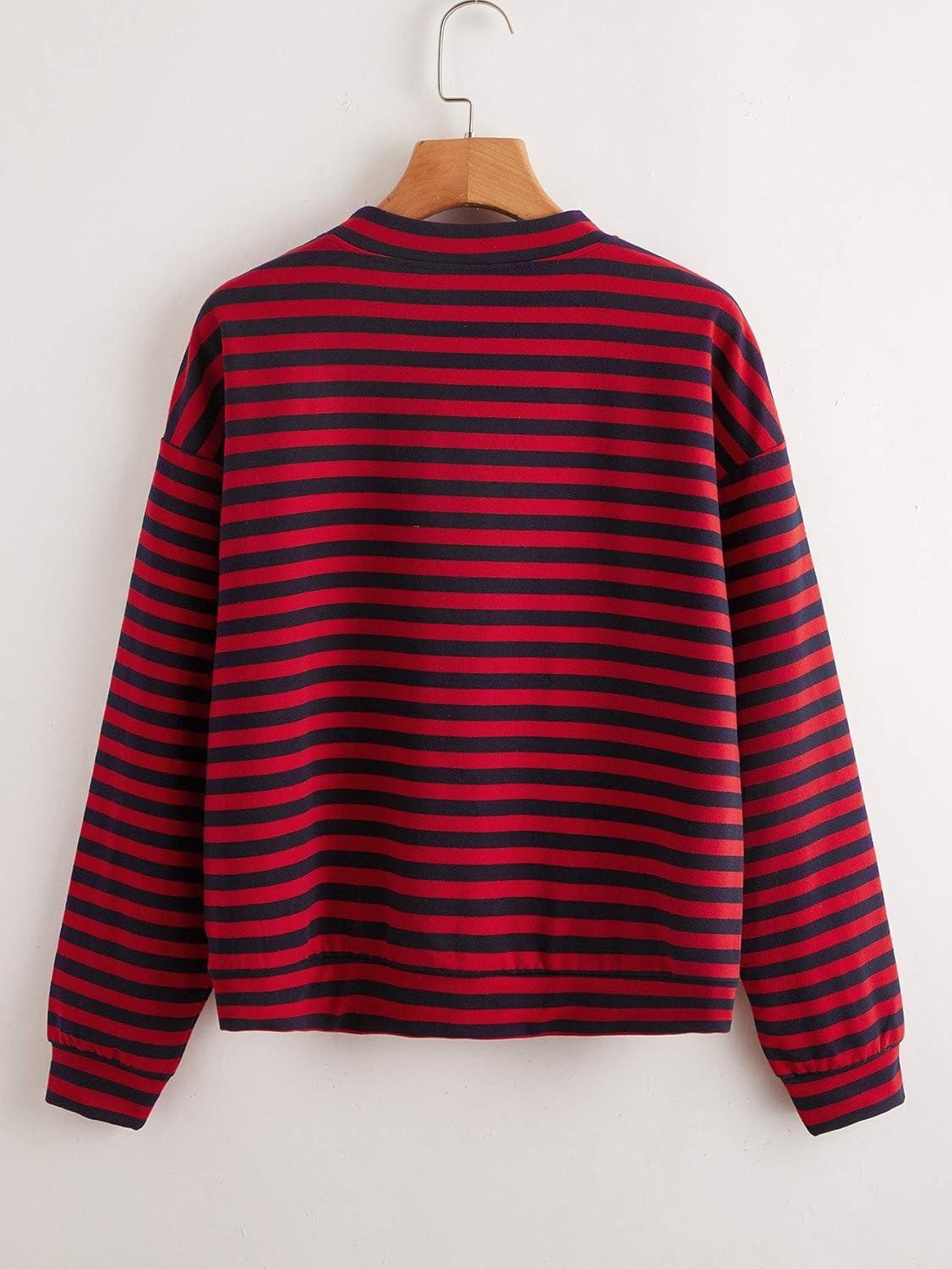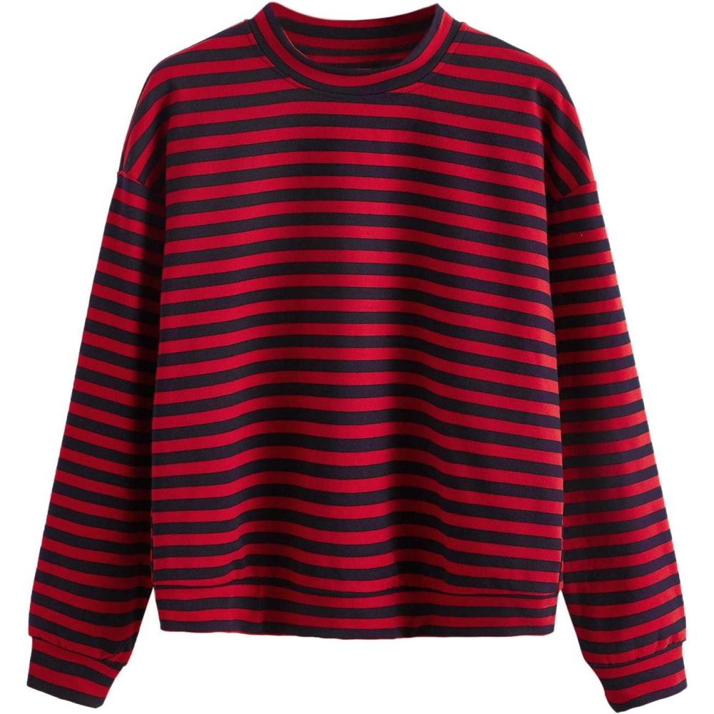 Don’t miss out on our limited-time offer: buy Floerns Women’s Drop Shoulder Striped Long Sleeve Sweatshirt(Black and Red), get a free {accessory}!