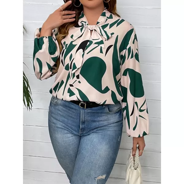 Floerns Women’s Floral Print Bow Tied Neck Lantern Long Sleeve Blouse Tops(Beige Green Multi)