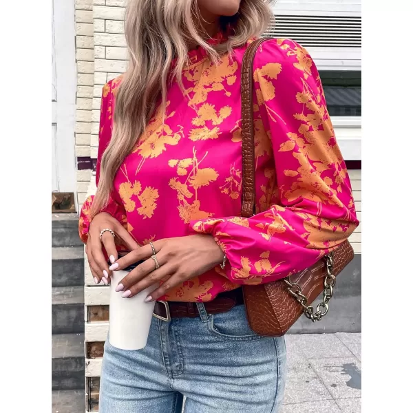 Floerns Women’s Floral Print Long Sleeve High Neck Georgette Chiffon Blouse(Hot Pink)