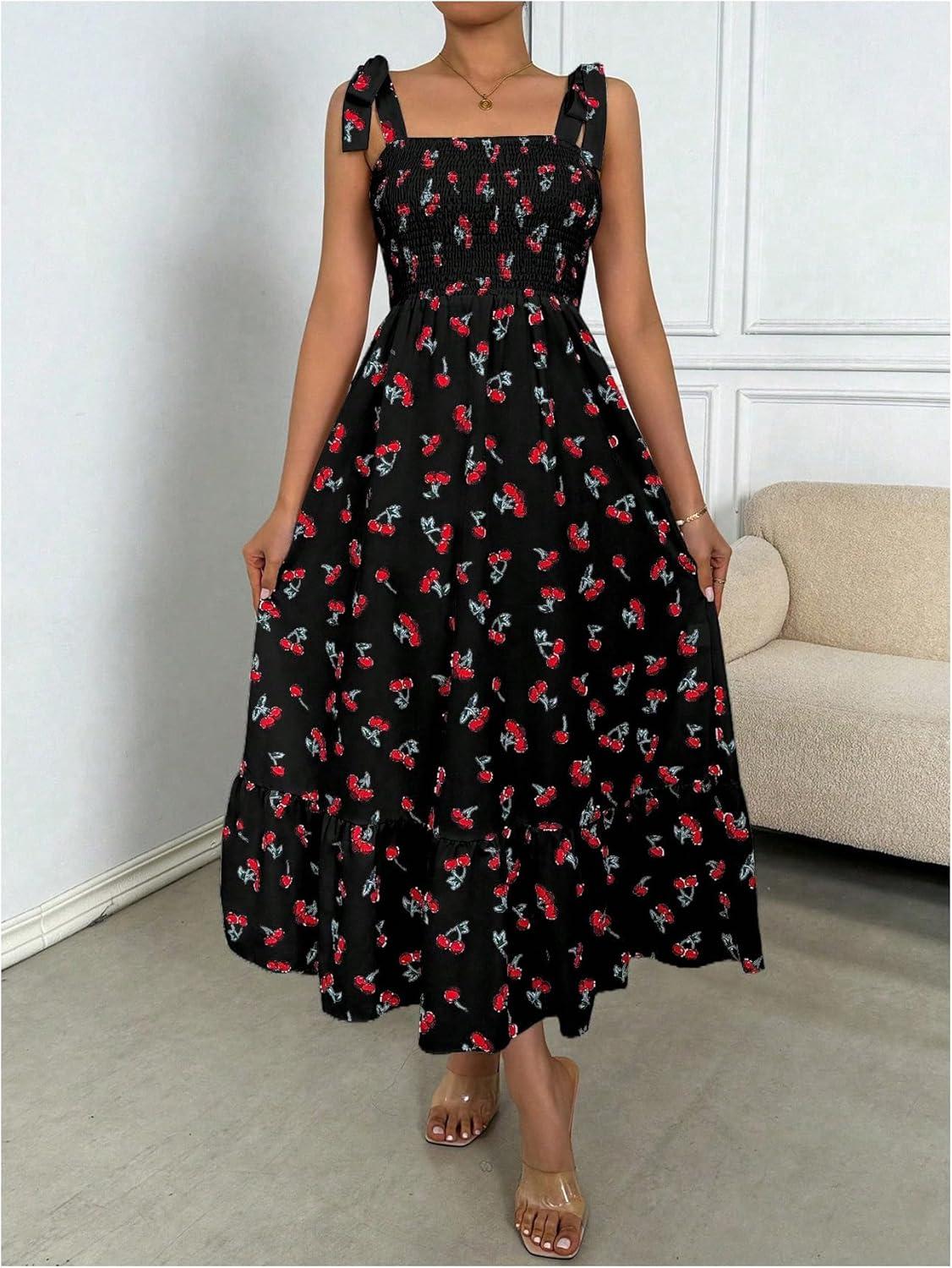 Get the Floerns Women’s Floral Print Tie Strap Square Neck Ruffle Boho Maxi Dress(Black Cherry) you’ve been eyeing at a discounted price during our seasonal sale event.