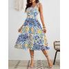 imageFloerns Womens Floral Print Tie Strap Square Neck Ruffle Boho Maxi DressBlue Plant