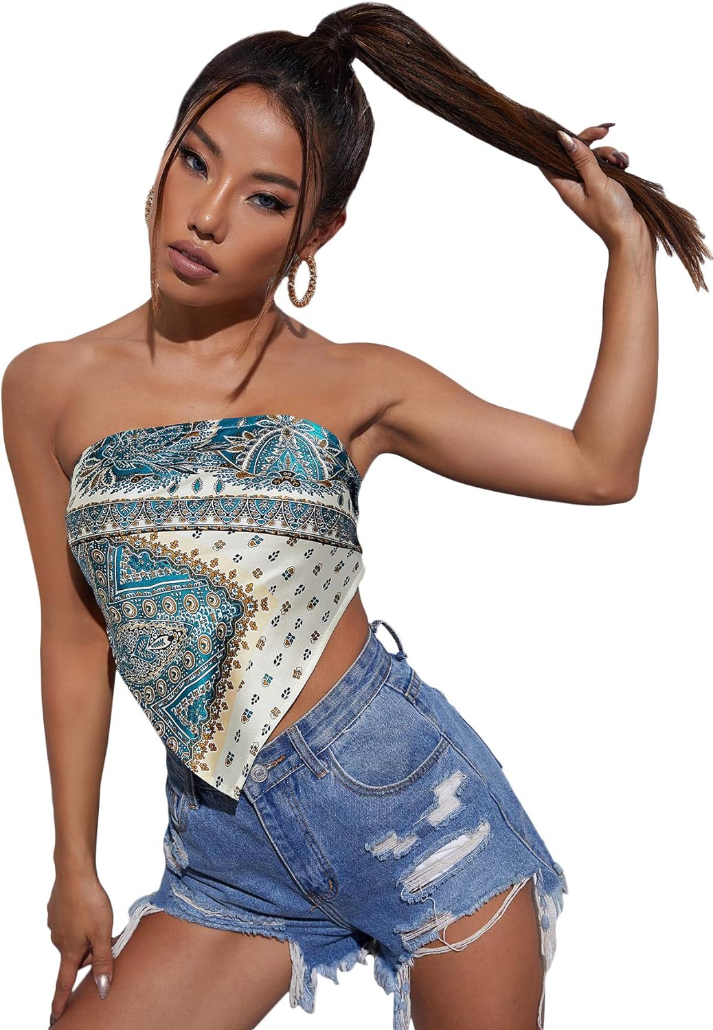 Floerns Women’s Graphic Print Tie Back Strapless Bandana Tube Top(Multi Paisley)
