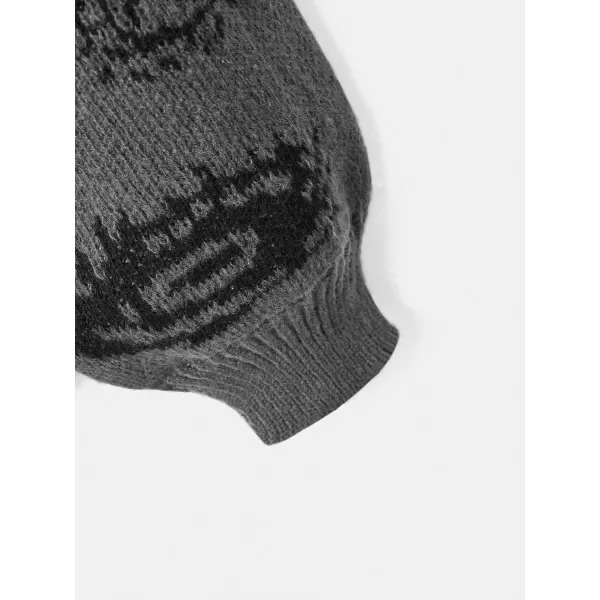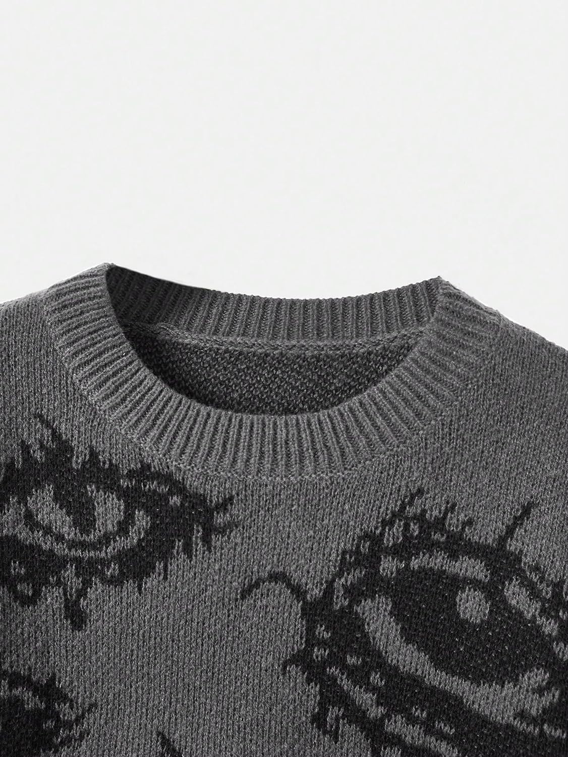 Floerns Women’s Grunge Punk Eye Print Long Sleeve Drop Shoulder Sweaters Top(Dark Grey)