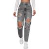 imageFloerns Womens High Waist Boyfriend Straight Leg Ripped Jeans Distressed Denim Pants GreyLight Grey Black