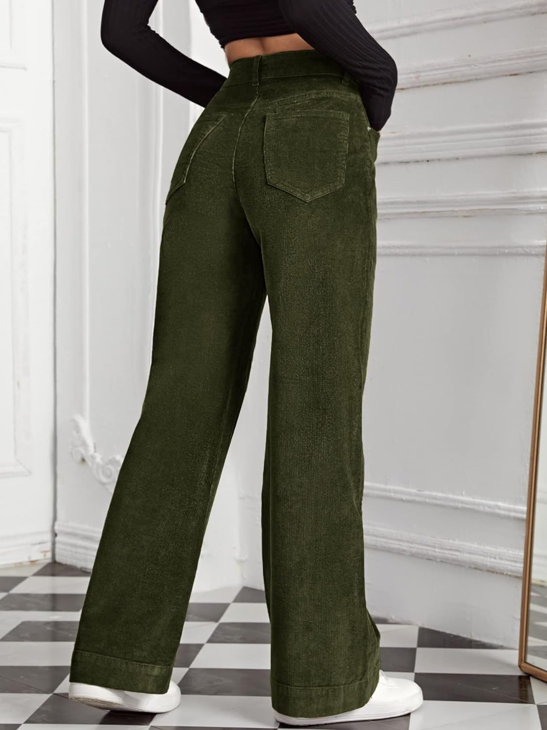 Floerns Women’s Hight Waist Corduroy Velvet Slant Pocket Wide Leg Pants(Army Green)