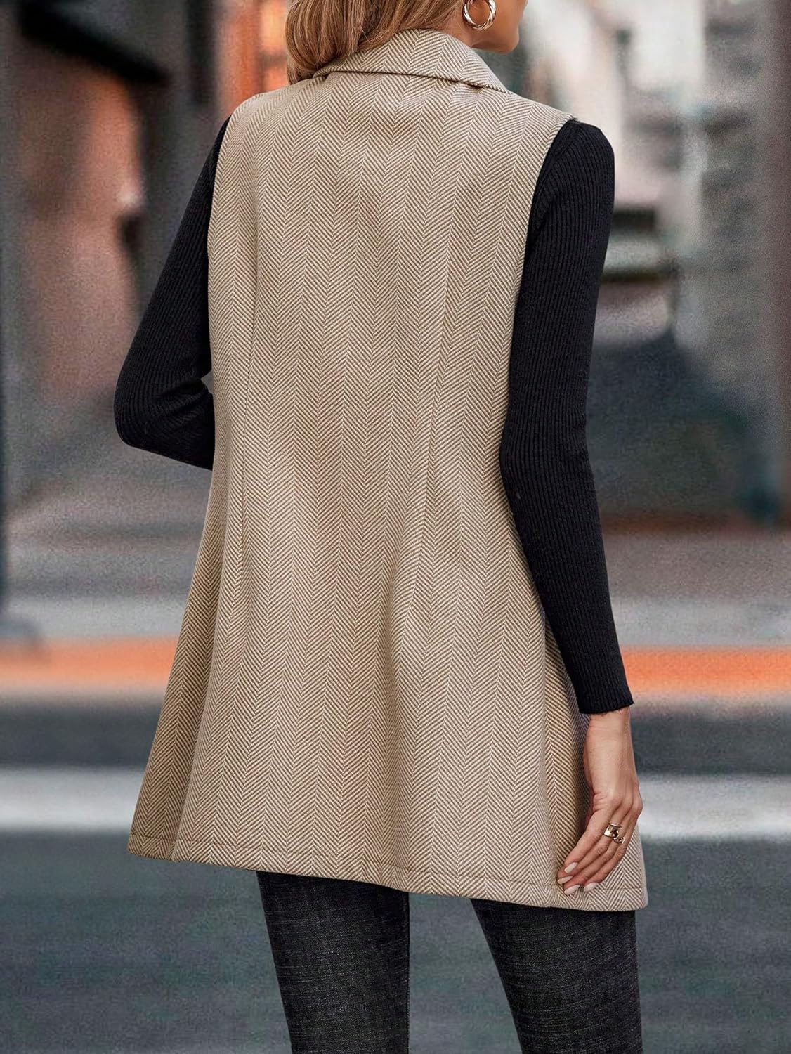 Floerns Women’s Lapel Neck Sleeveless Double Breasted Office Vest Blazer(Khaki)