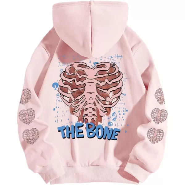 Floerns Women’s Letter Graphic Print Long Sleeve Drawstring Hoodie Sweatshirt(Black White Cartoon)