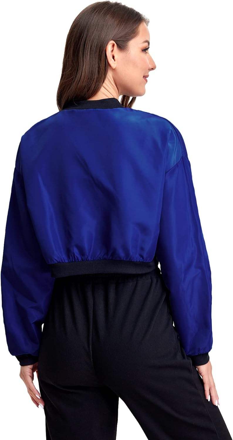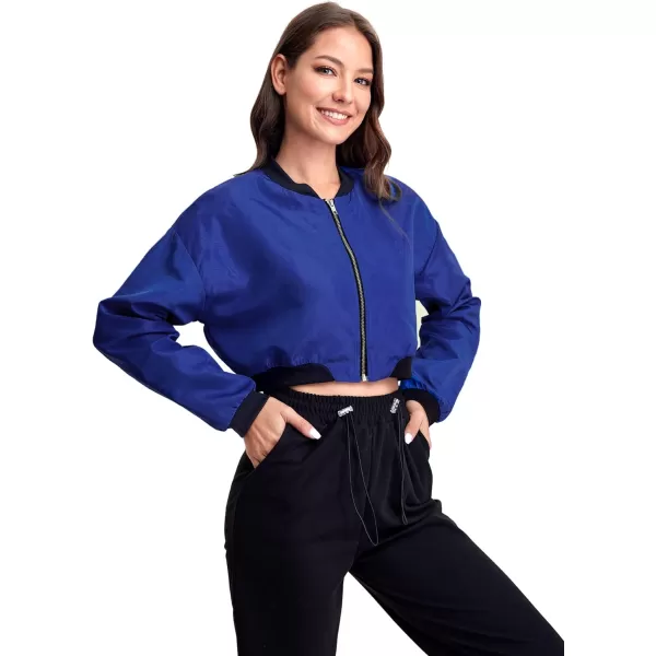 Floerns Women’s Long Sleeve Lightweight Crop Bomber Jacket(Royal Blue)