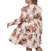 Floerns Women’s Mock Neck Long Sleeve Floral Print Ruffle Short Dress(Beige Red Floral)