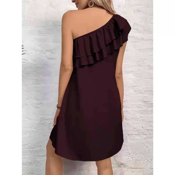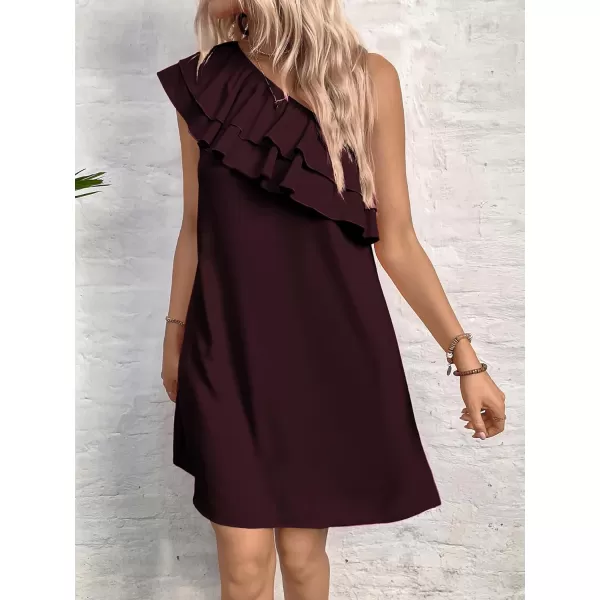 Get more for your money with our exclusive bundle deals on Floerns Women’s One Shoulder Tiered Layered Sleeveless Ruffle Trim Tunic Dress(Maroon) and accessories.