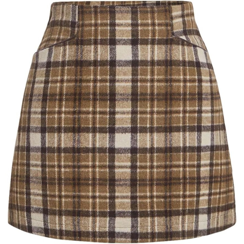Floerns Women’s Plaid High Waist Bodycon Mini Skirt(Khaki and Brown)