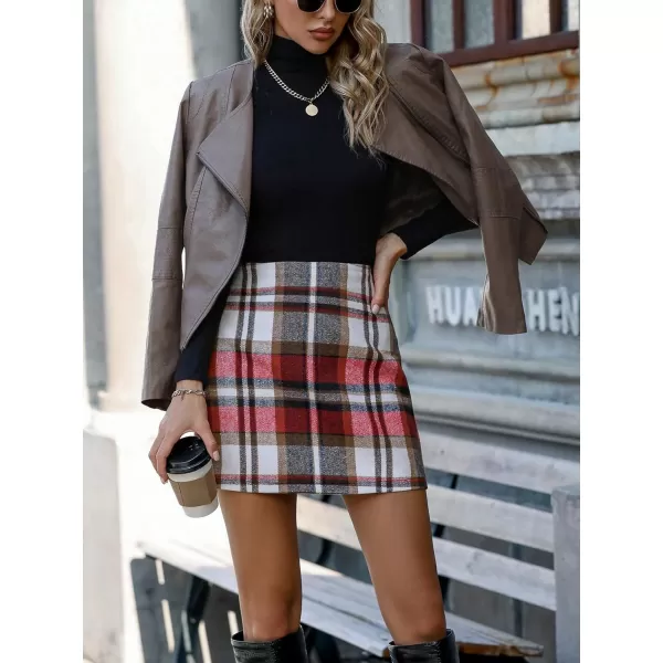 Floerns Women’s Plaid High Waist Bodycon Mini Skirt(Red White Multi)