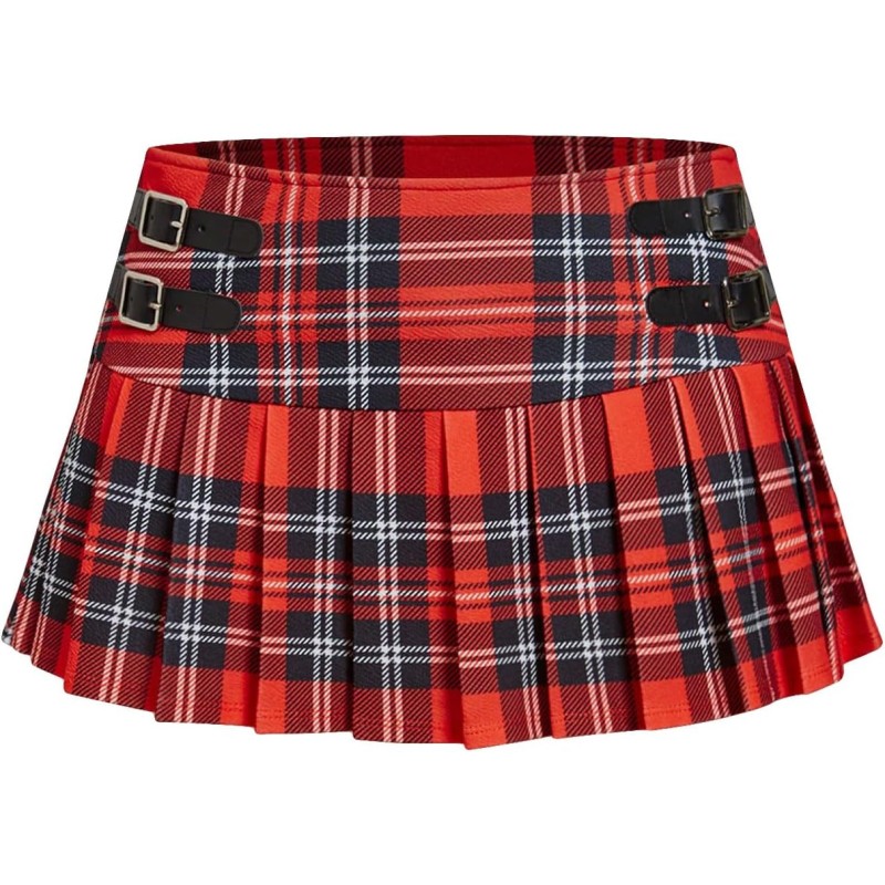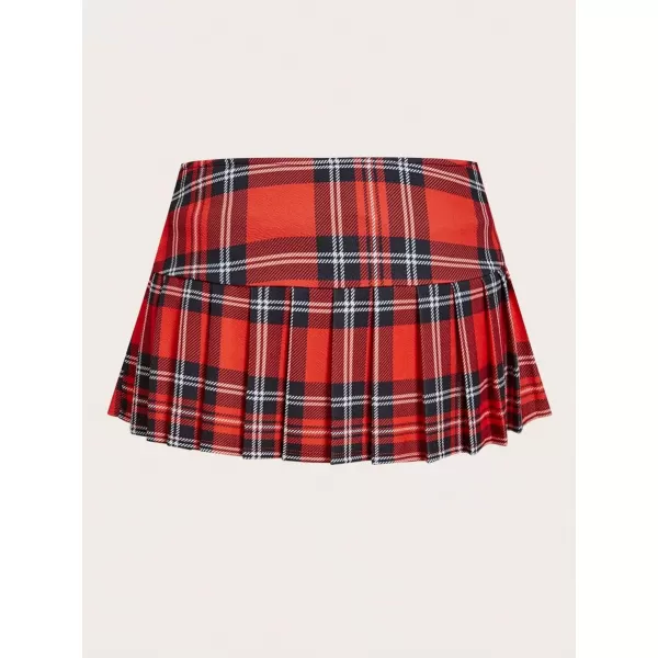 Floerns Women’s Plaid Print Pleated Skirt Tartan School Uniform Mini Skirt(Hot Red)