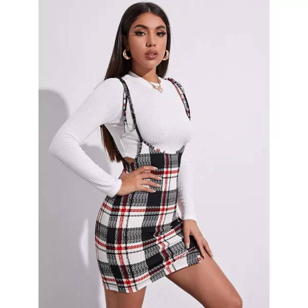Floerns Women’s Plaid Suspender Skirt Tie Shoulder Split Hem Overall Bodycon Mini Dress(A Black and Red)
