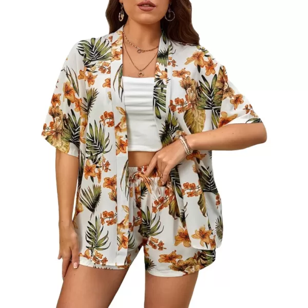 Get more for your money with our exclusive bundle deals on Floerns Women’s Plus Size 2 Piece Outfit Tropical Print Kimono Top and Shorts Set and accessories.