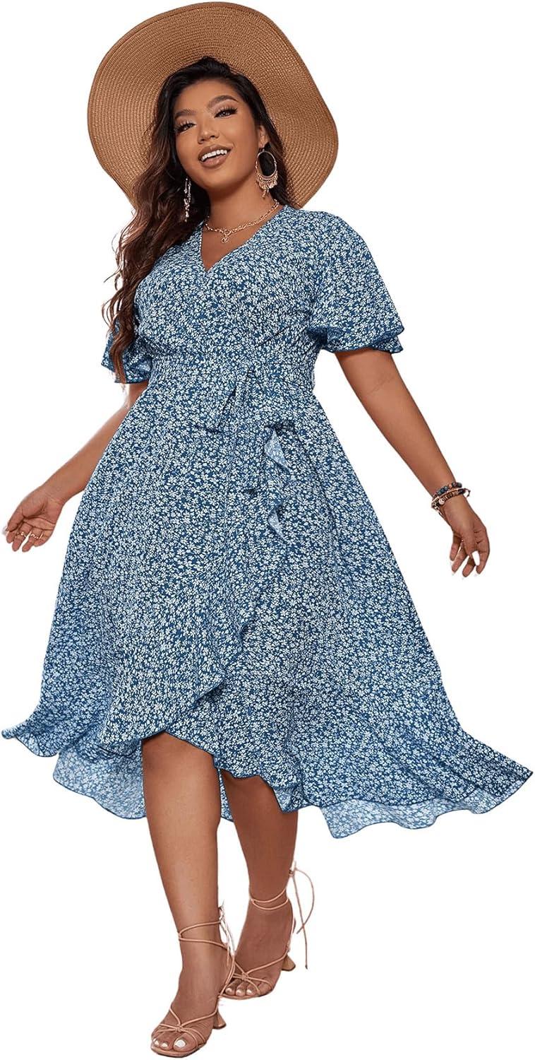 Our holiday sale features the best deals on Floerns Women’s Plus Size Boho Flutter Short Sleeve Ruffle Hem A Line Midi Dress(Blue and White) and accessories. Shop now and save!