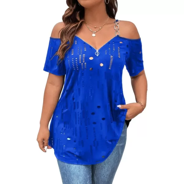 Floerns Women’s Plus Size Cold Shoulder Chain Detail Zip Up Casual Tee Shirt(Grey)