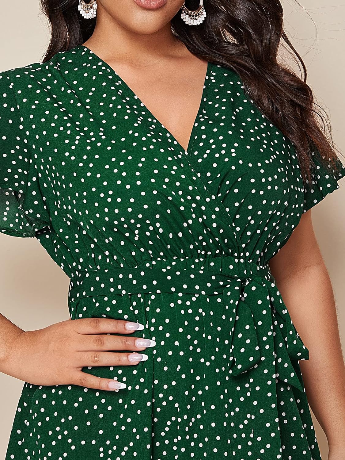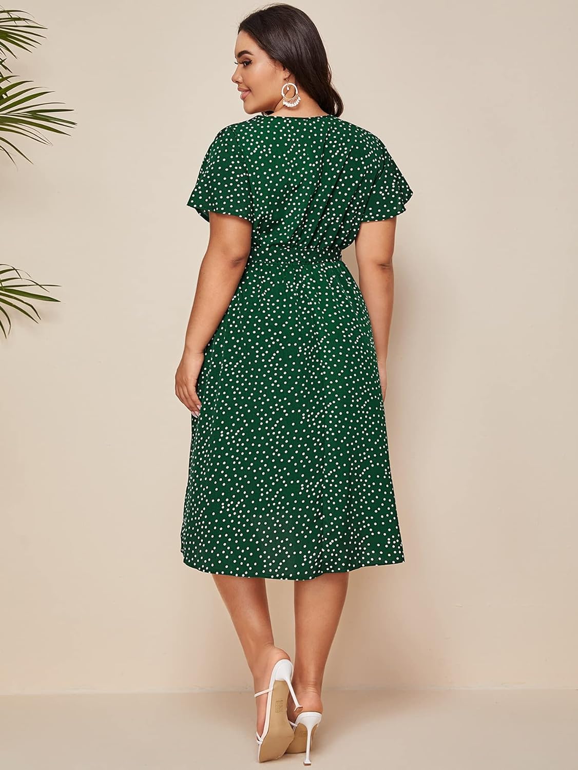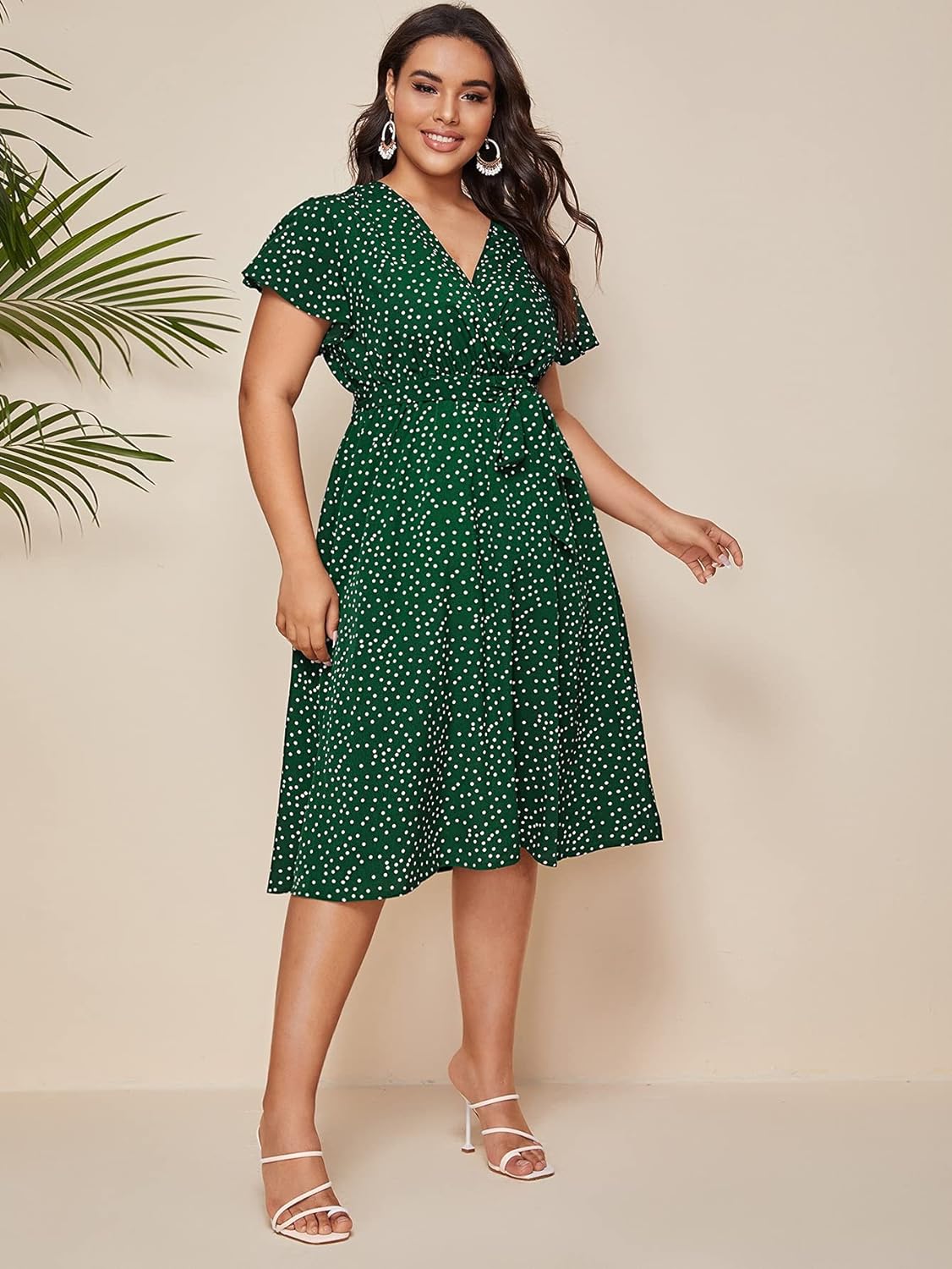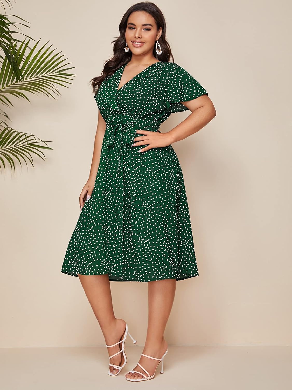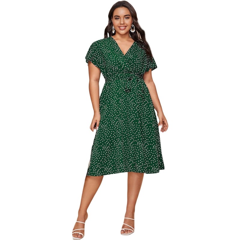 Floerns Women’s Plus Size Polka Dots Wrap V Neck Short Sleeve A Line Midi Dress(A Green)