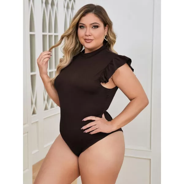 Floerns Women’s Plus Size Ruffle Trim Cap Sleeve Mock Neck Bodysuit Leotard Brown 2XL(Floerns Women’s Plus Size Ruffle Trim Cap Sleeve Mock Neck Bodysuit Leotard Brown 2XL)