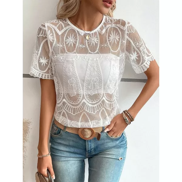 Floerns Women’s Plus Size Sheer Mesh Short Sleeve Crop Top T Shirt Without Bra(White)