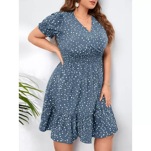 Floerns Women’s Plus Size Striped Print Wrap V Neck Short Sleeve A Line Dress(Dusty Blue)