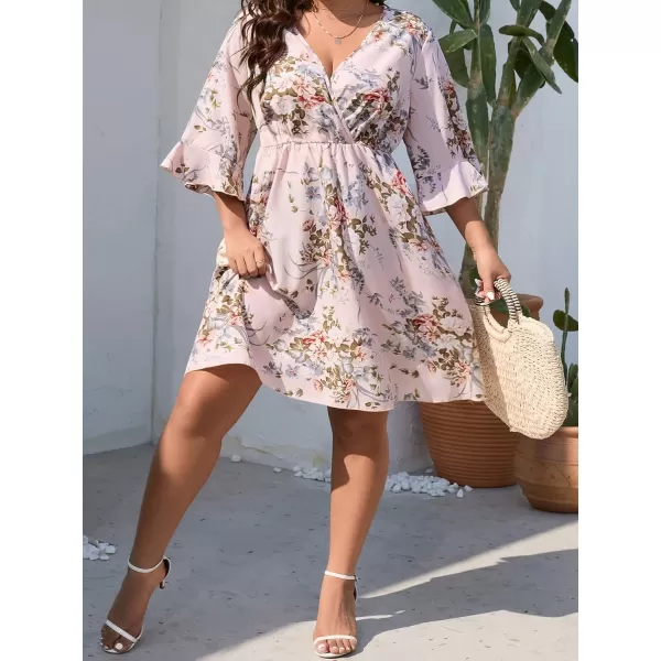 Floerns Women’s Plus Size Striped Print Wrap V Neck Short Sleeve A Line Dress(Floral Light Pink)